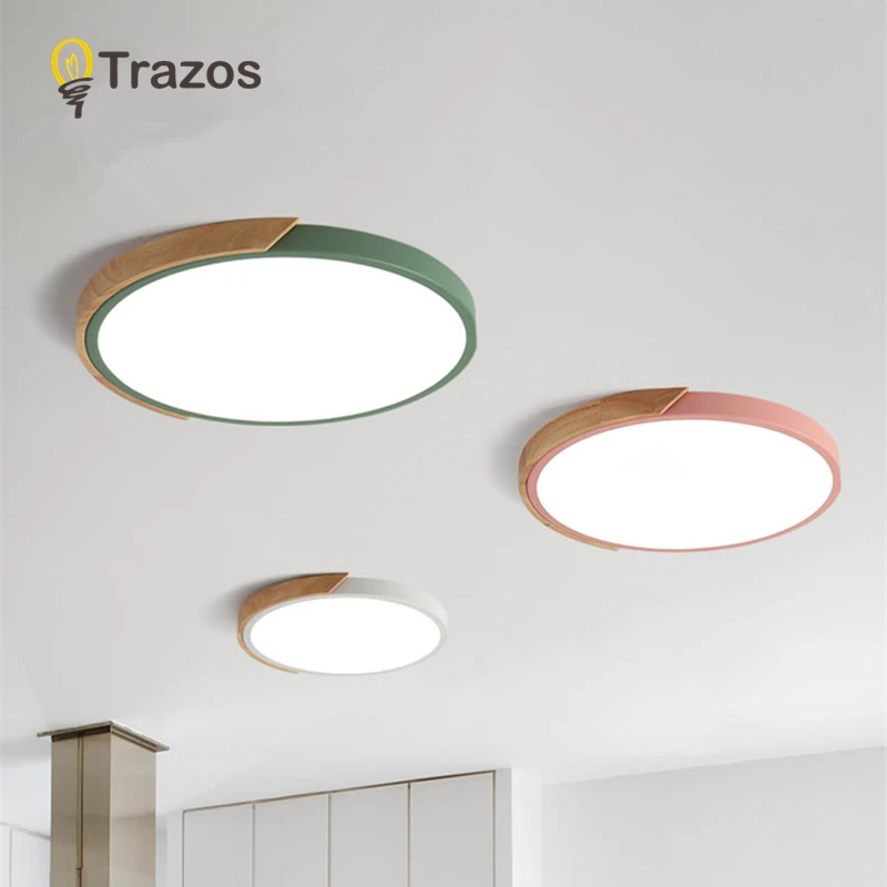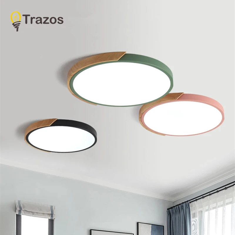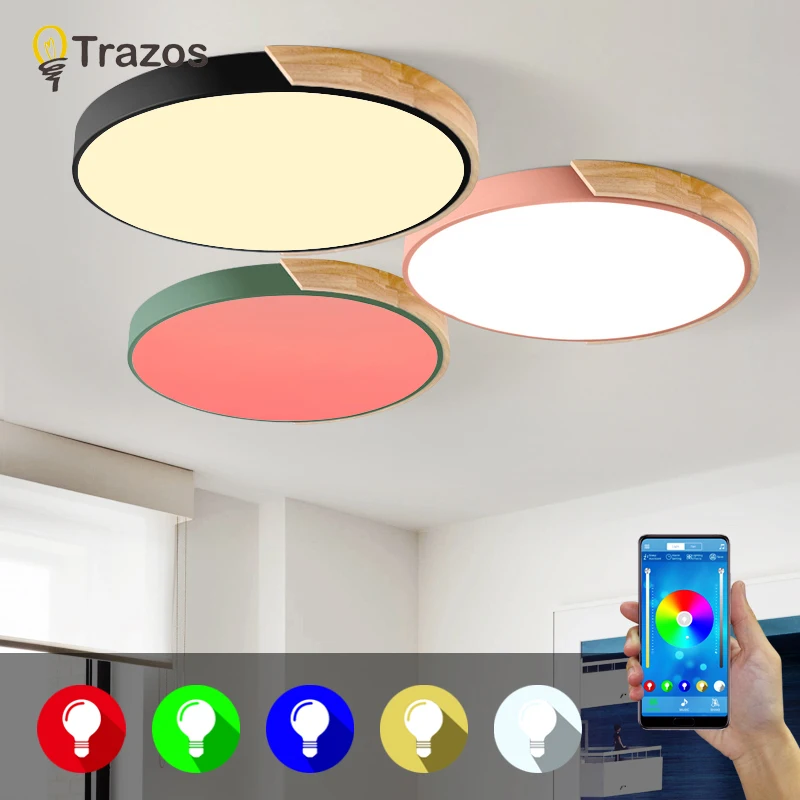 TOP Modern LED ceiling Lights RGB Dimmable Round Wood 5cm APP Remote control Bluetooth Light bedroom la